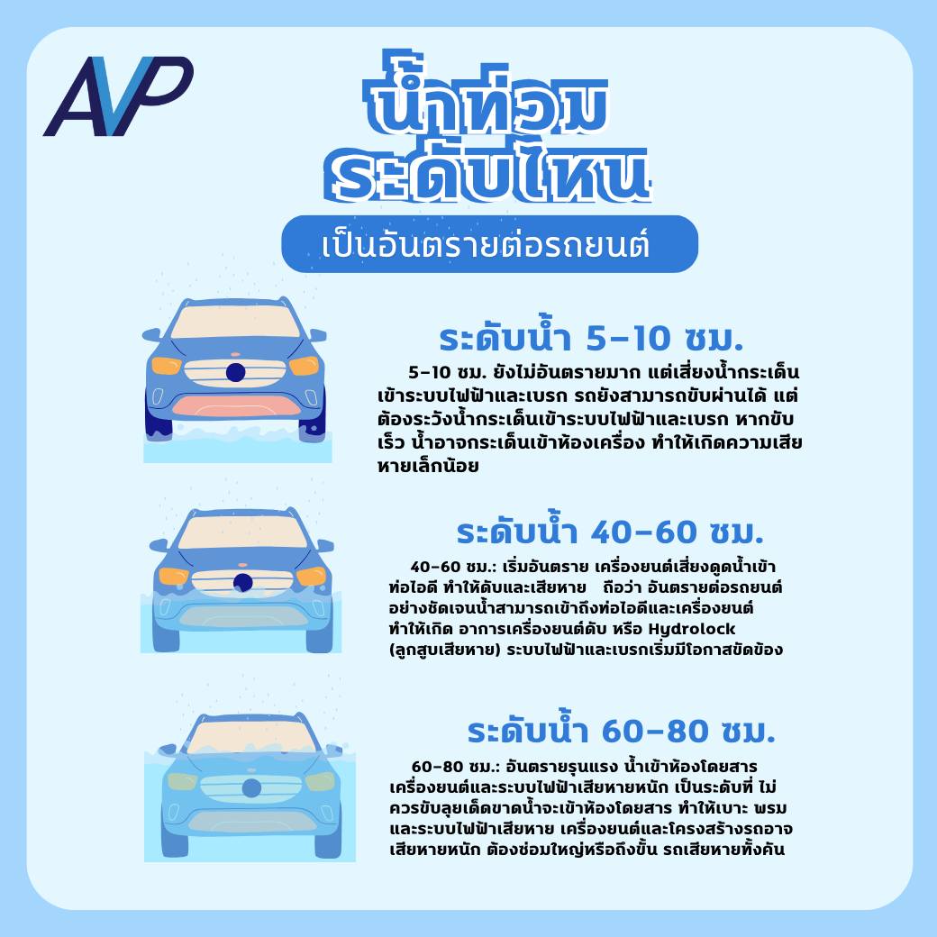 รถยังสามารถขับผ่านได้ แต่ต้องระวังน้ำกระเด็นเข้าระบบไฟฟ้าและเบรก
